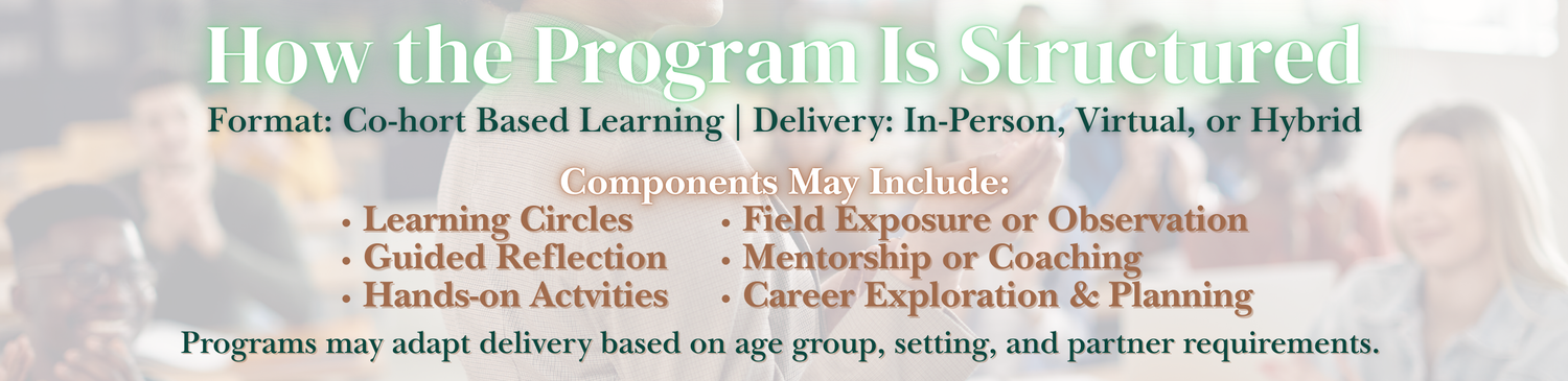 Participants engage in learning across key readiness domains, including Professional Identity & Reflective Practice, Family, Culture & Community, Group Care & Learning Environments, Caregiving Routines as Curriculum, and an Introduction to Relationship-Based Care. Together, these core learning areas strengthen reflective leadership, deepen culturally responsive practice, and support the intentional design of nurturing, relationship-centered learning environments.