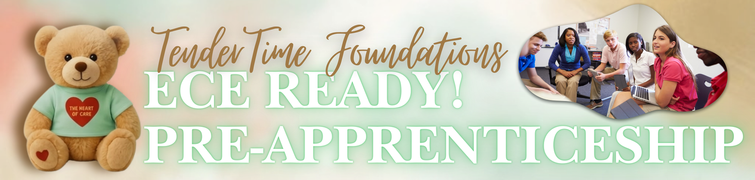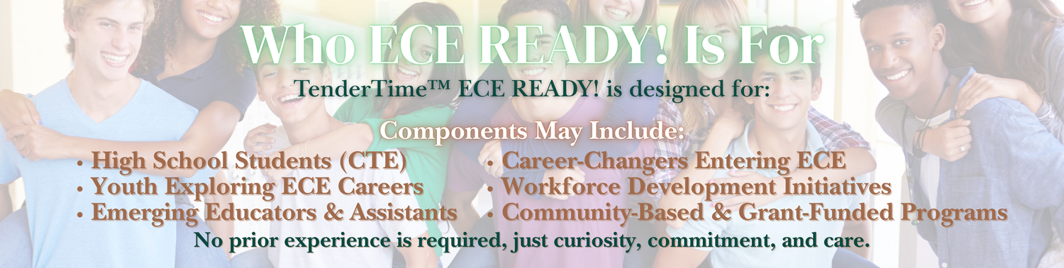 TenderTime™ ECE READY! is a pre-apprenticeship and career-readiness pathway designed to introduce youth, emerging educators, and career-changers to the profession, practice, and purpose of early childhood education.